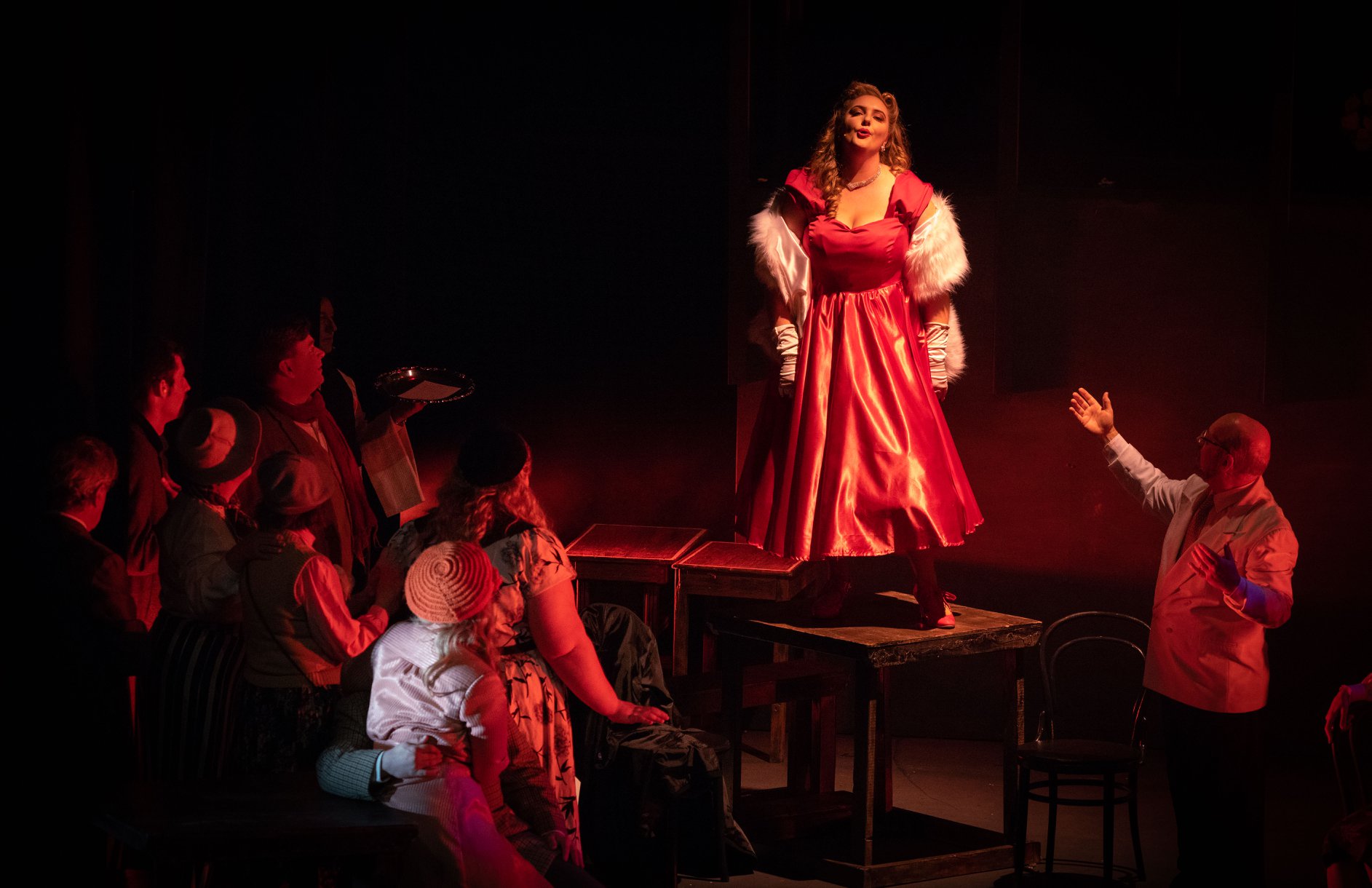 On Saturday I was unexpectedly asked to review Central Coast Opera’s new production of La Bohème, very late in its run—mainly so that the young artists could get feedback. I was delayed by Sydney traffic, but arrived just in time for the beginning of the Act I love duet. This Bohème is helmed by the young director Warwick Doddrell and well-established MD, Central Coast Conservatorium’s Artistic Director/ CEO Patrick Brennan, and it is a sumptuous, romantic and effective, if rather derivative, feast for the senses. It boasts a really gorgeous, complex lighting design by Damien Rice, lovely colourful mid-20th-century costumes by Kelly Denley and Janelle Fischer, and a veritable army of vocal coaches, repetiteurs and consultants behind the scenes. It is trumpeted by Brennan’s program notes as “by far the most ambitious opera project produced by the Central Coast Conservatorium under the banner of Central Coast Opera”. It is indeed a very large undertaking, and along with a large, soprano-heavy chorus, it is double-cast. I saw the ‘Beauvoir’ cast, which is mixed: some emerging opera stars, an accomplished tenor experiencing a bad night, and a wonderful musical theatre performer who is a little out of his depth…all slightly hampered by a strange sound design.
